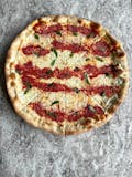 Italian peeled tomatoes, mozzarella cheese, shredded parmigiana, basil & olive oil.